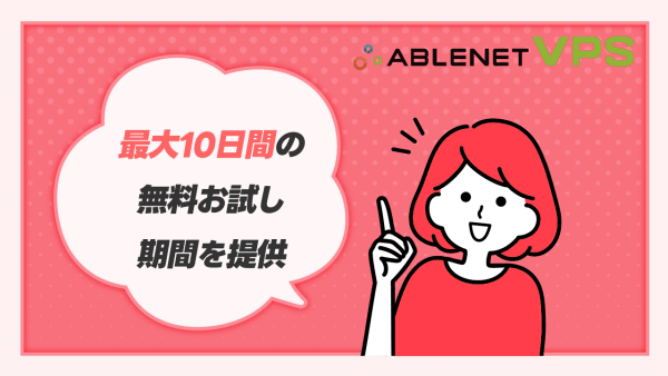 ABLENET VPSは、最大10日間の無料お試し期間を提供しており、この期間を利用してサービスの特徴や性能を十分に確かめることができます。